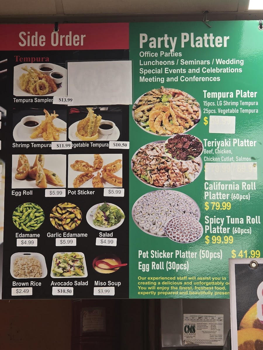 The combo & sushi plates provide excellent value, with delicious pairings such as the Tempura + Cali Roll for $10, Tempura + Beef for $9, and the Tempura + White Meat for $9. Other options include the Cali Roll + Beef Teriyaki for $12 and Cali Roll + Chicken Teriyaki for $11.